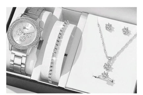 5In1 Geneva Ladies Gift Set - Watch, Necklace, Bracelet, Earrings & Ring Silver