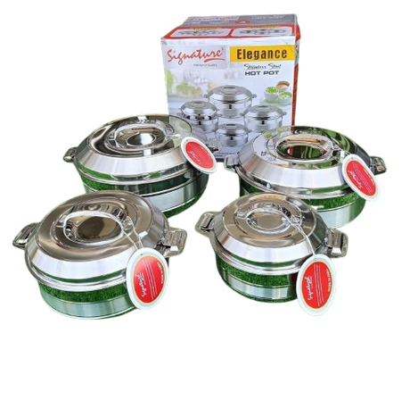 4pcs Stainless Steel Insulated Hotpot Set - 1L, 1.5L, 2.5L, 3.5L