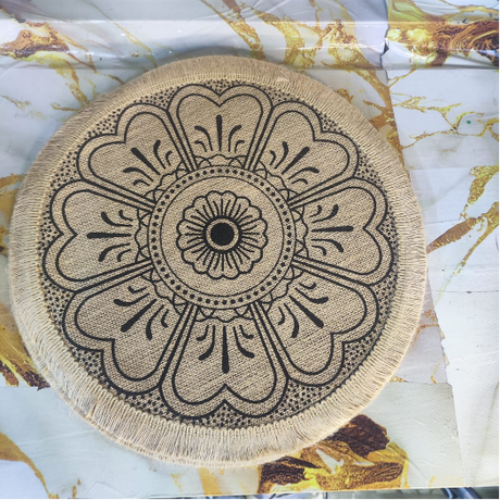 Coffee Table - Glass Top with 4 Puff Stools & Decorative Border