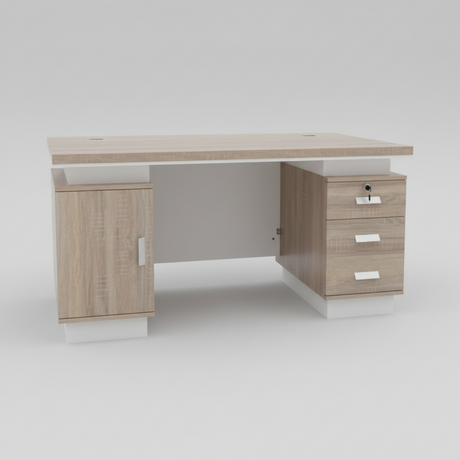 Executive Desk - 1.4m Light Wood with Horizontal Slat Design