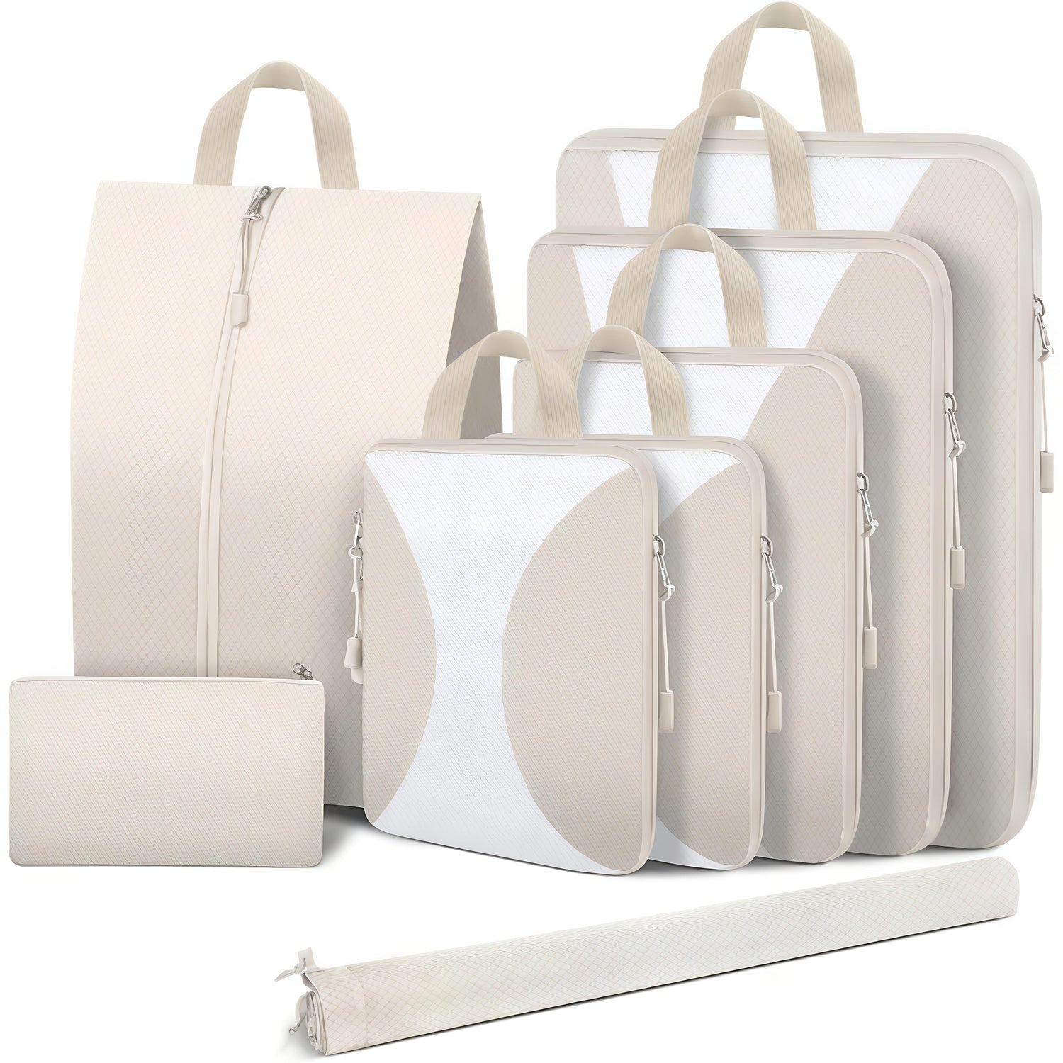8pcs Travel Suitcase Compression Cubes – Waterproof Packing Organizers