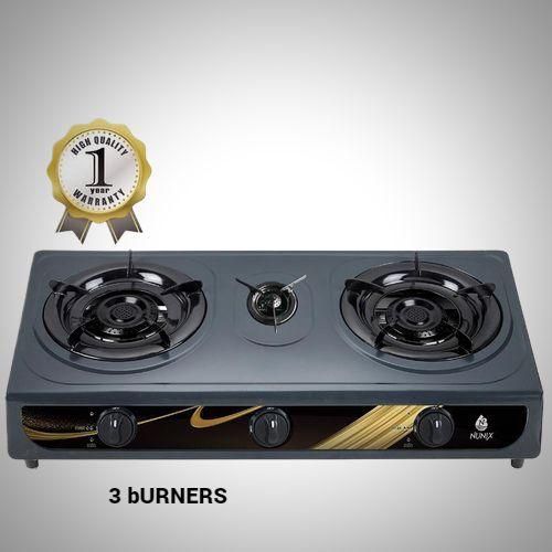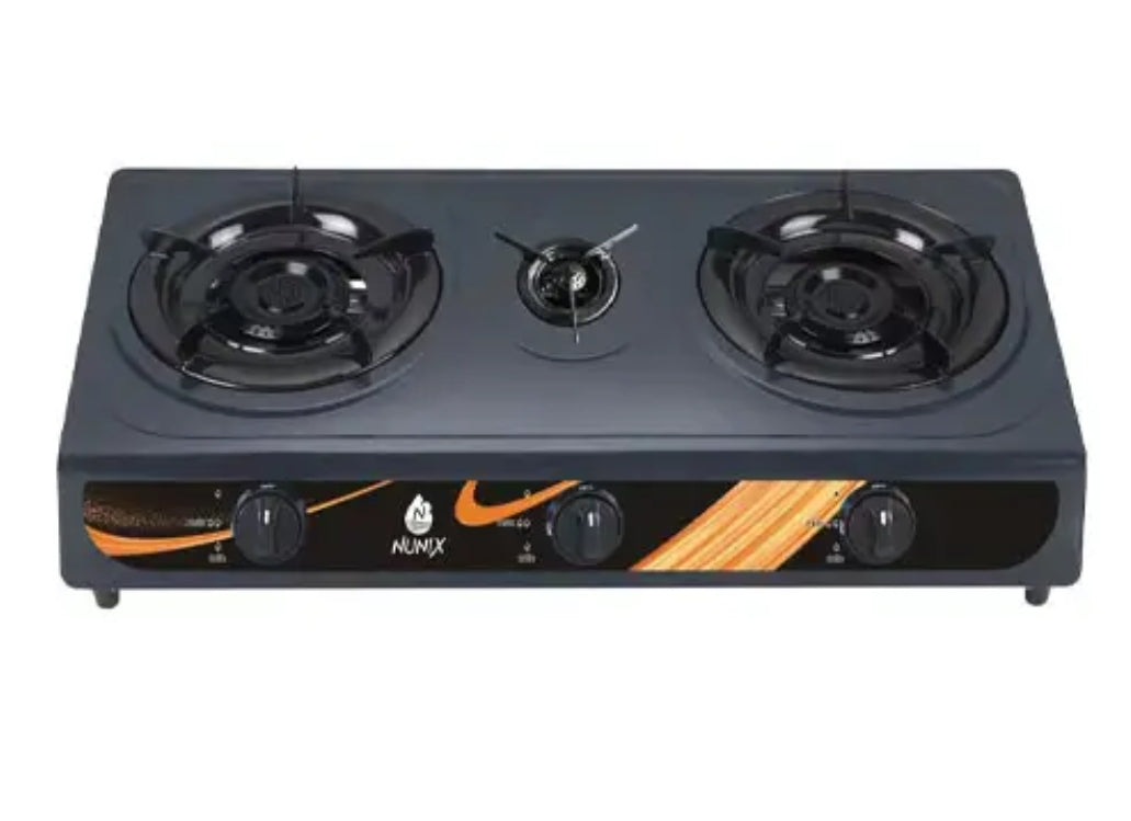 Upgrade your kitchen with the Nunix ST-002 table top double burner gas stove cooker. Built with strong galvanized steel and a sleek new design, it features an auto ignition system and whirlwind technology for efficient, reliable, and stylish cooking.