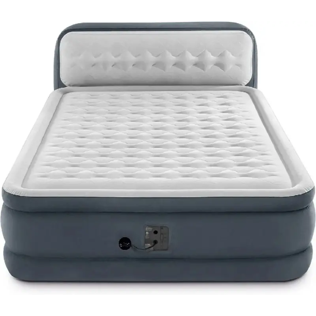 Experience elevated comfort with the INTEX Dura-Beam queen-sized airbed featuring a plush headboard and built-in pump for effortless setup.The raised design and velvety surface ensure a restful sleep whether at home or on the go.
