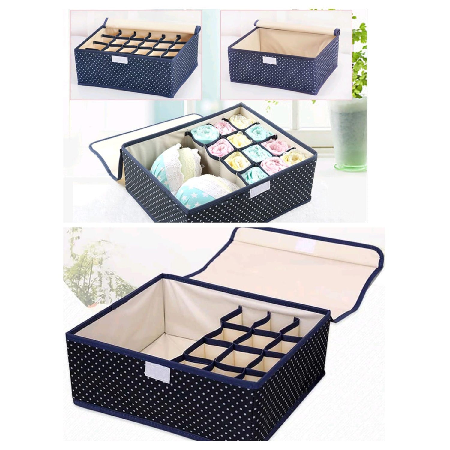 - Use: Ideal for organizing bras, underwear, socks, and boxers in closets or drawers