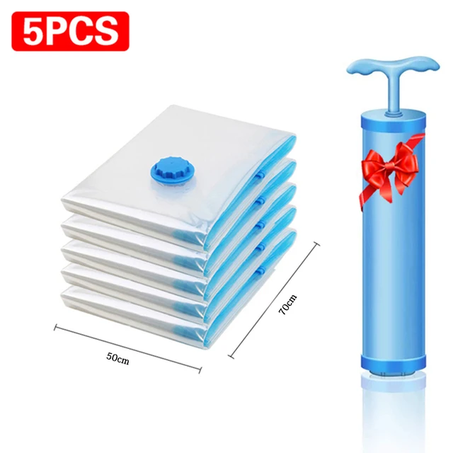 5pcs Vacuum Storage Bags Set with Pump Space Saver for Clothes & Blankets