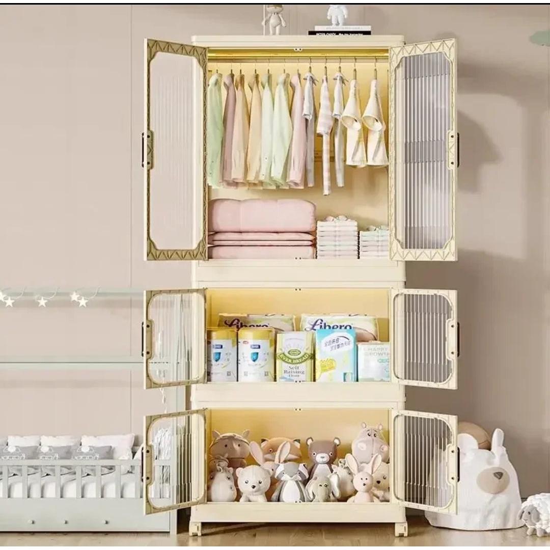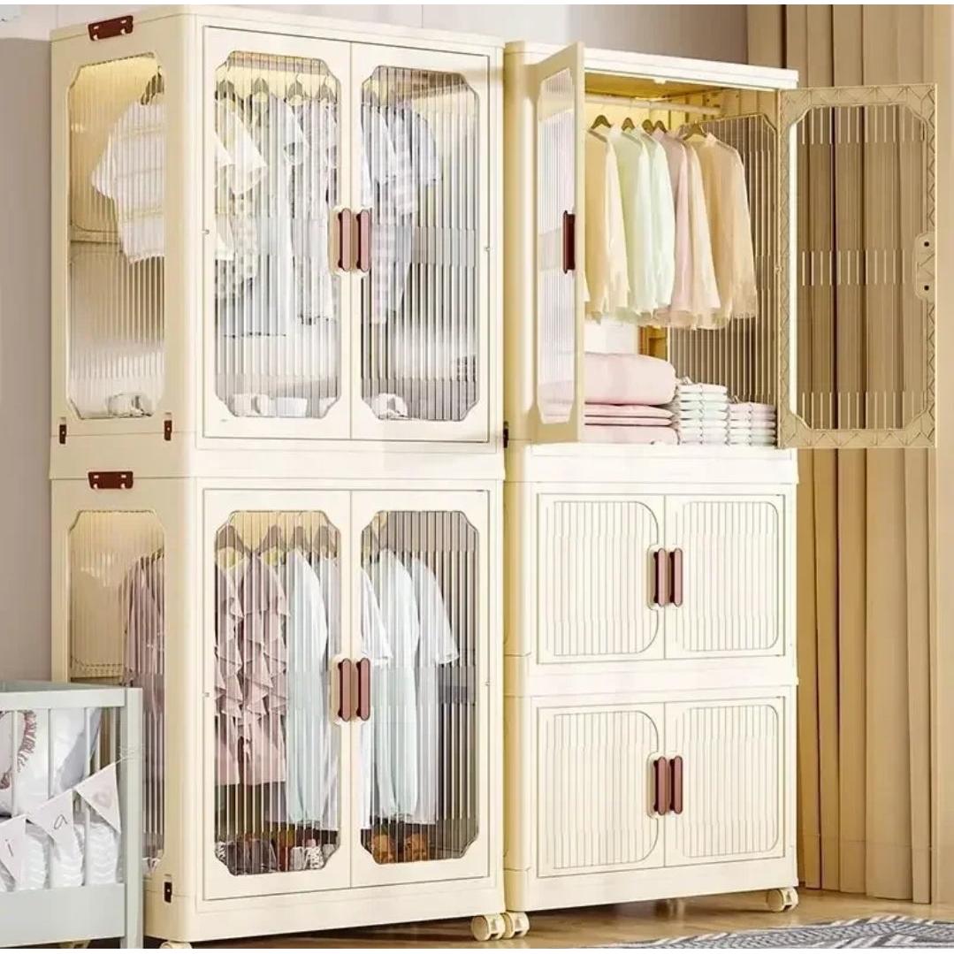 This Stackable 3-Level Plastic Wardrobe is perfect for kids' rooms, guest rooms, and small living spaces, offering practical and flexible storage for hanging clothes and organizing belongings.