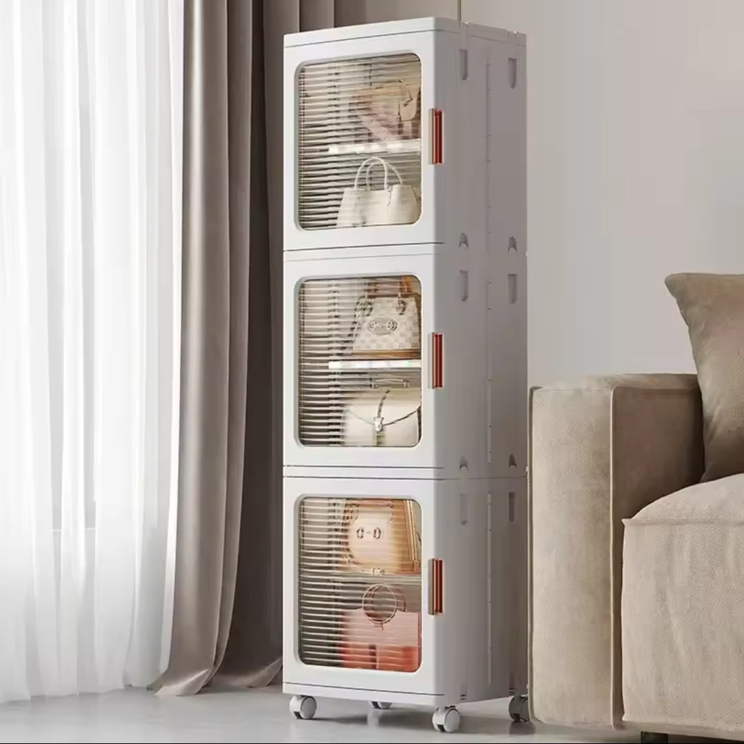 Storage Multilayer Cabinet with 3 Compartments Adjustable Length (61-90cm) | 166cm (H) x 29cm (W) x 37cm (D)