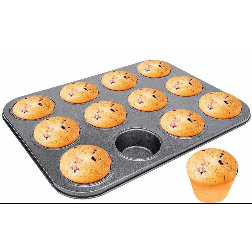 12 Hole Cupcake Baking Tin Non Slip Durable Carbon Steel Muffin & Cupcake Pan