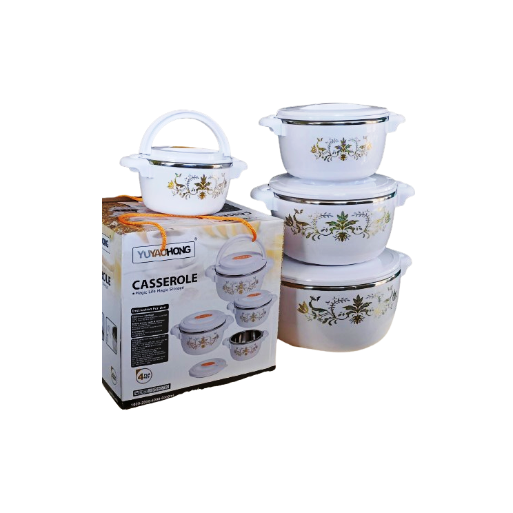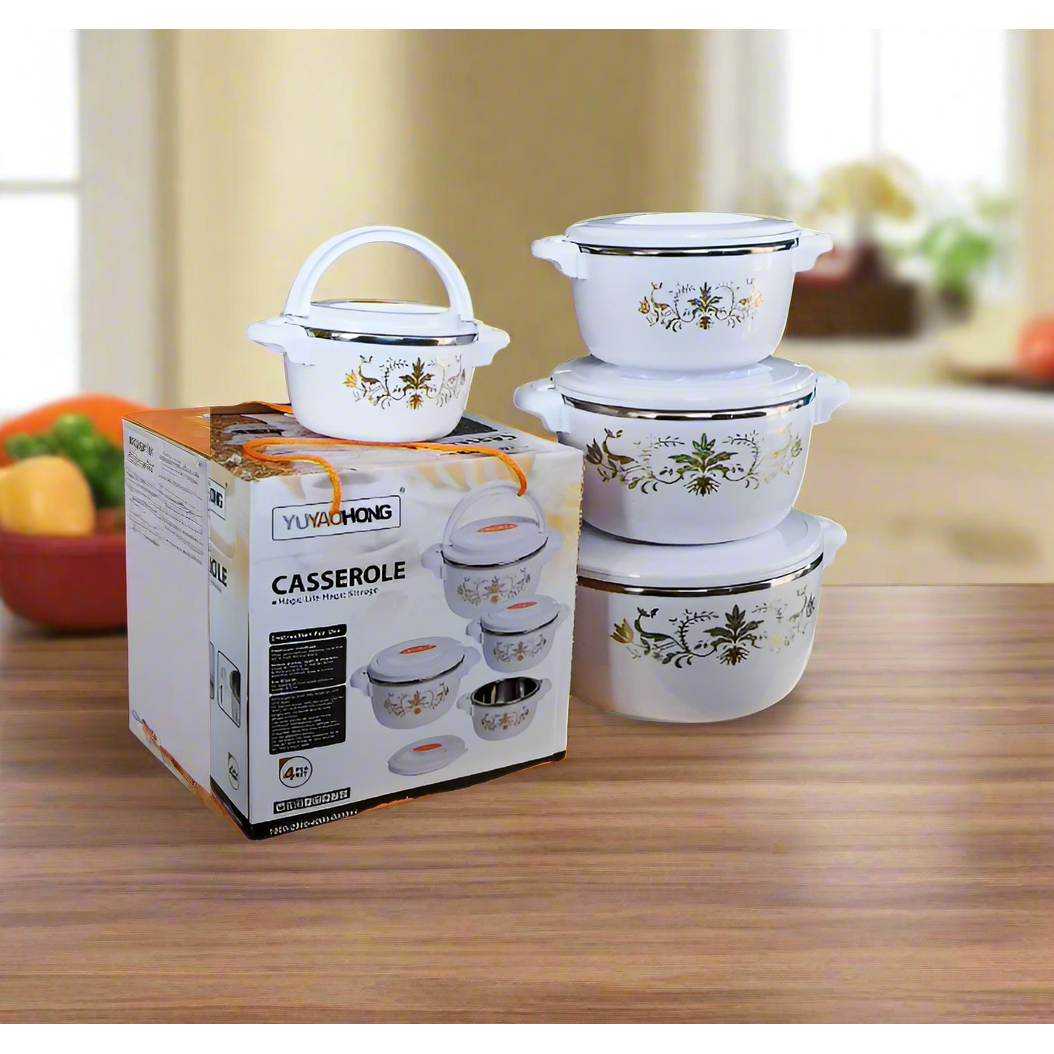 - Set of 4 Casseroles: Ranges in size to accommodate different serving needs, from small portions to large family dishes.