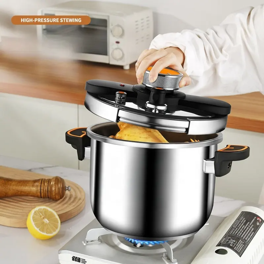 Cook faster and safer with our 6 Litre Non-Explosive Pressure Cooker. Featuring a nonstick interior and a durable anti-explosion safety design, this versatile cooker is suitable for use on open flames, induction cookers, and electric stoves, making it a must-have for every kitchen.