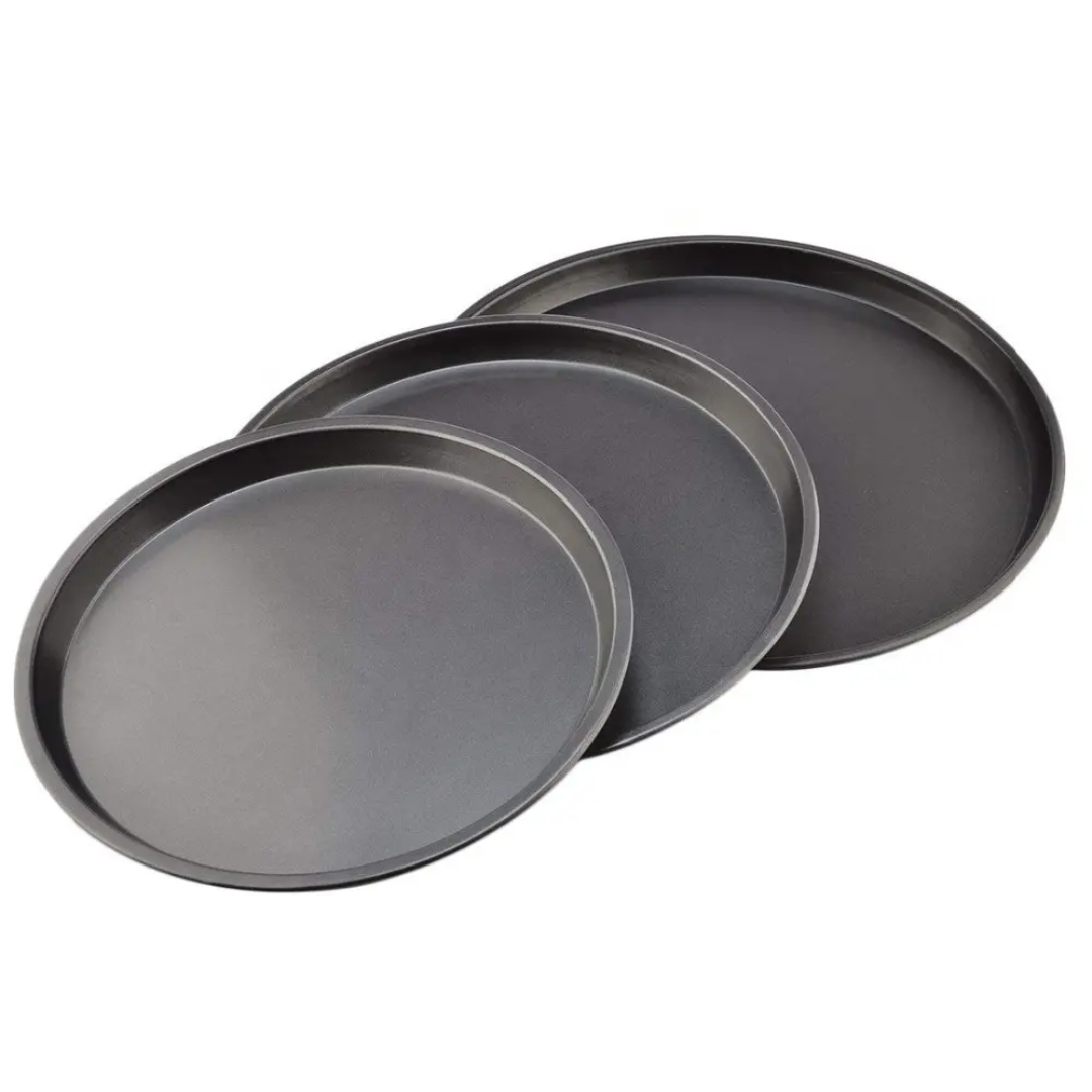 Bake perfect pizzas every time with this 3-piece round non-stick pizza pan set. Designed for even heat distribution and easy release, these pans are a must-have for any home baker or pizza lover. The three sizes make it easy to serve individuals, families, or guests in style.