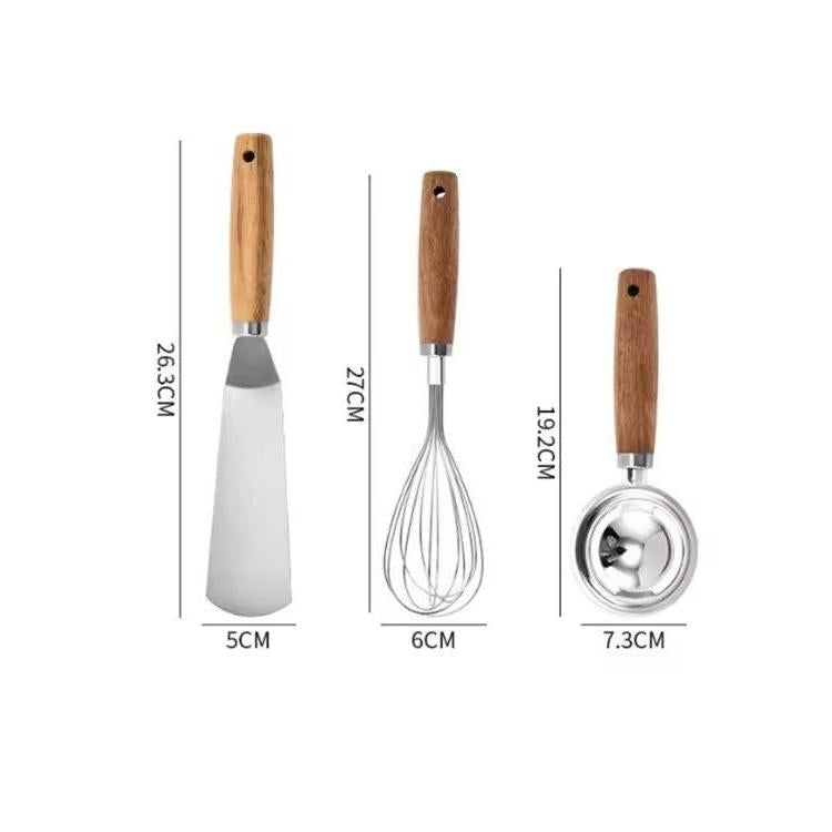 - Durable & Stylish: Each tool features a sturdy stainless steel construction with a comfortable wood handle, combining durability with a classic, elegant look.