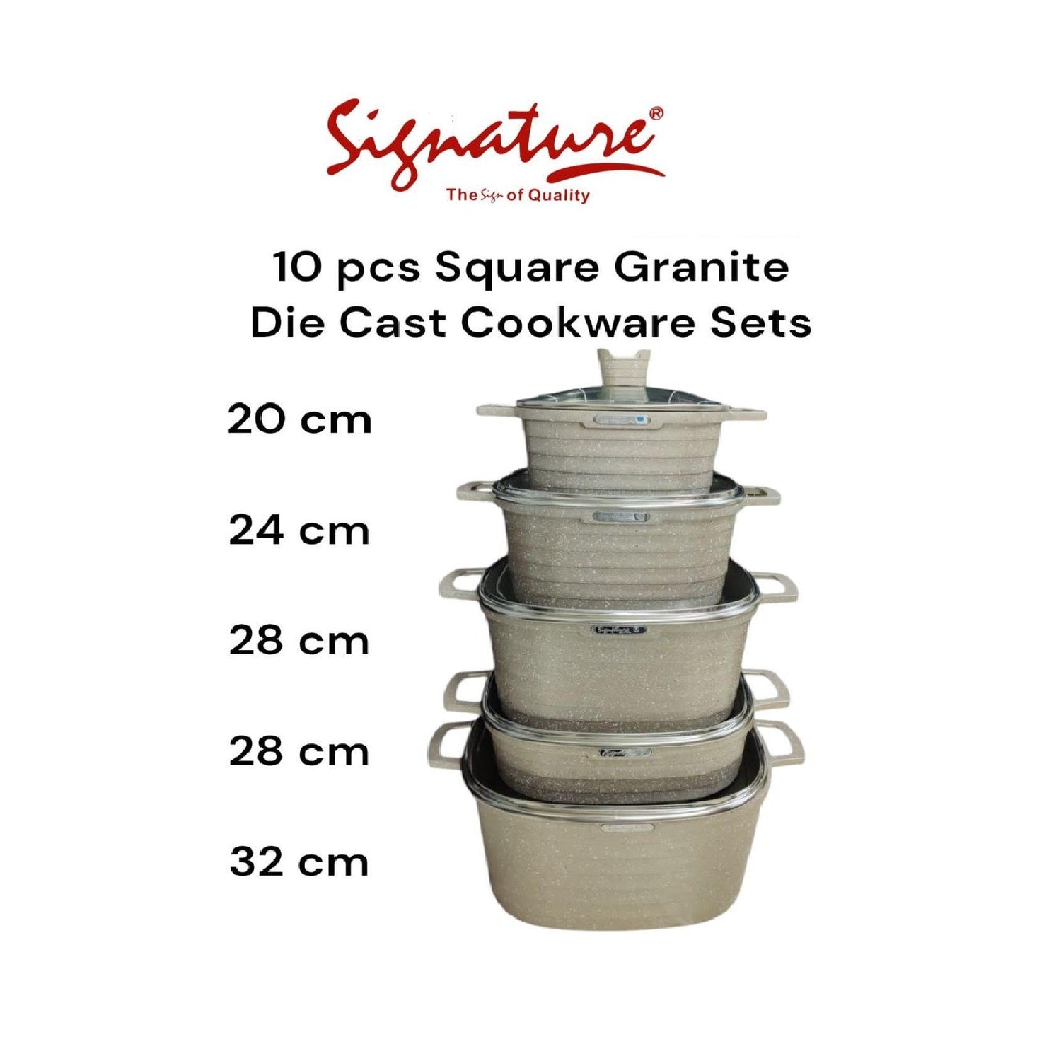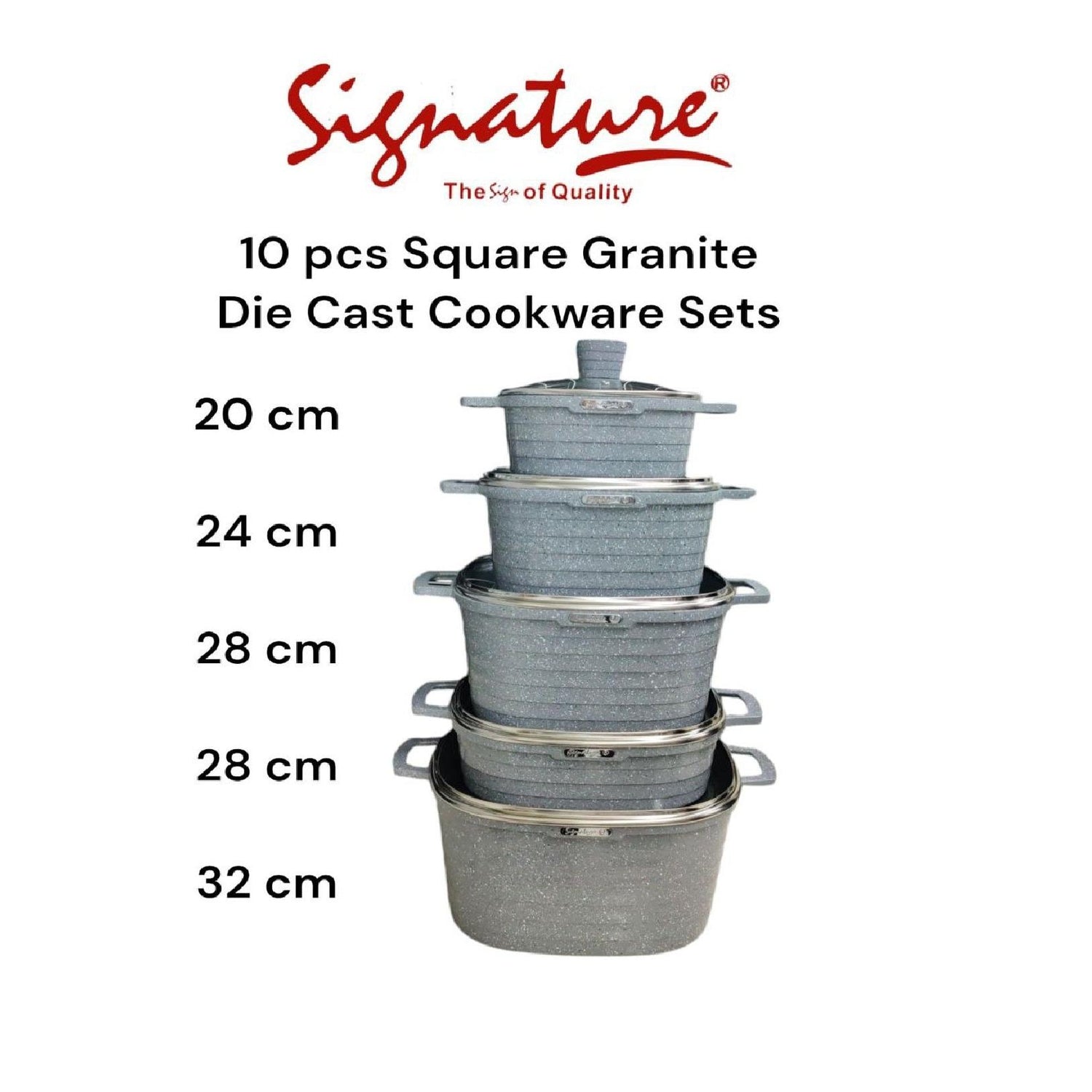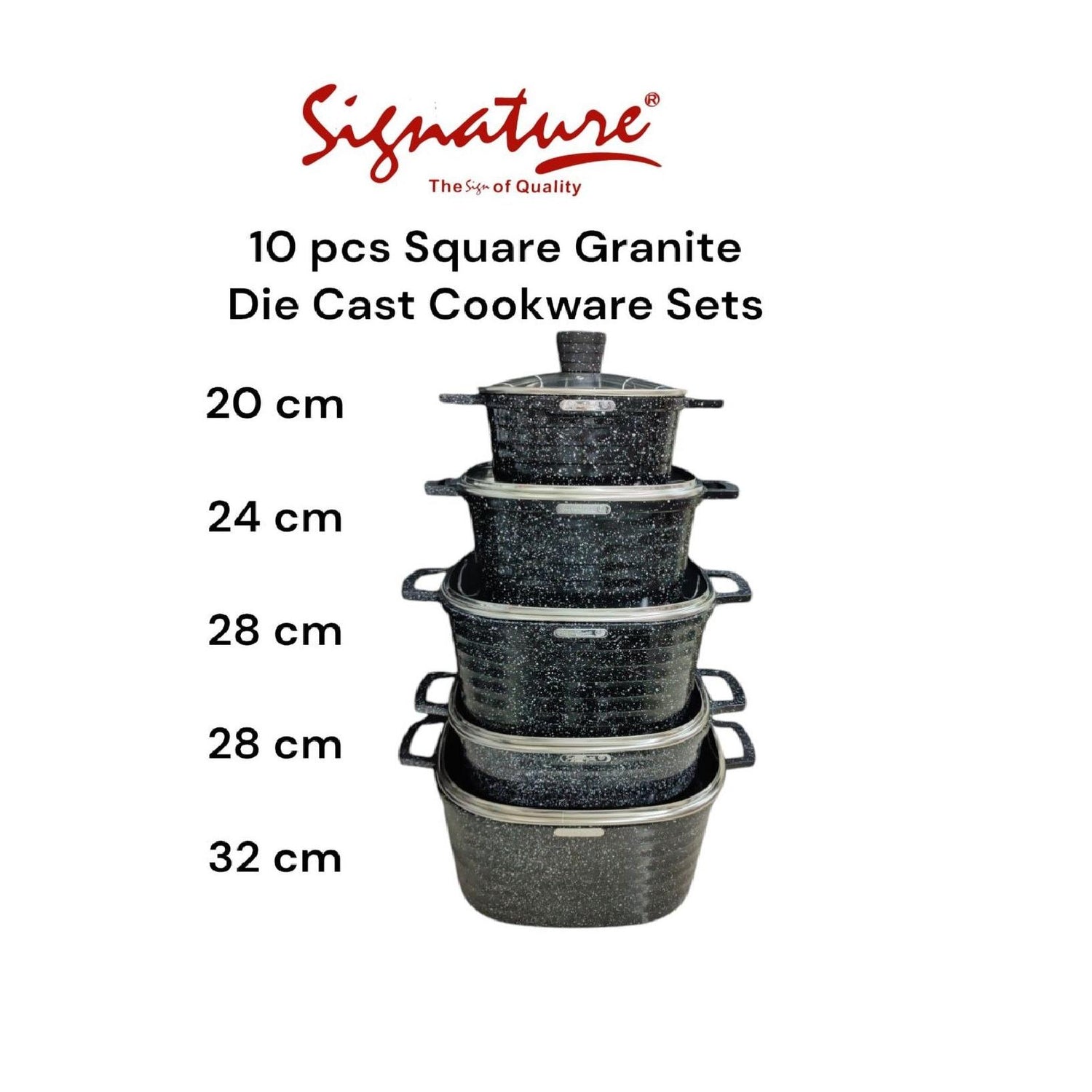 Signature 10 pcs Square Granite Die Cast Cookware Set | Premium Non-Stick, Scratch Resistant Cookware for Effortless Cooking