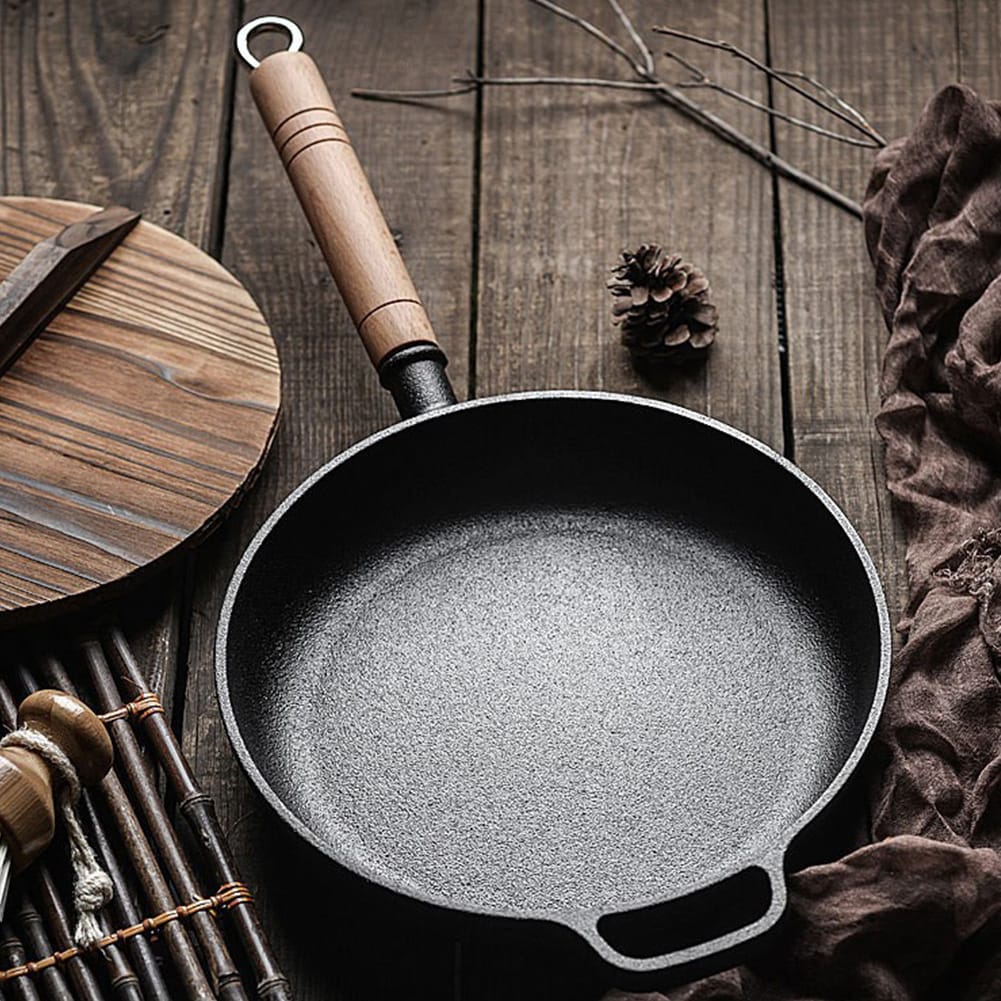 Thickened Cast Iron Frying Pan 25cm Non Stick Heavy Duty Pan Perfect for Frying & Chapati