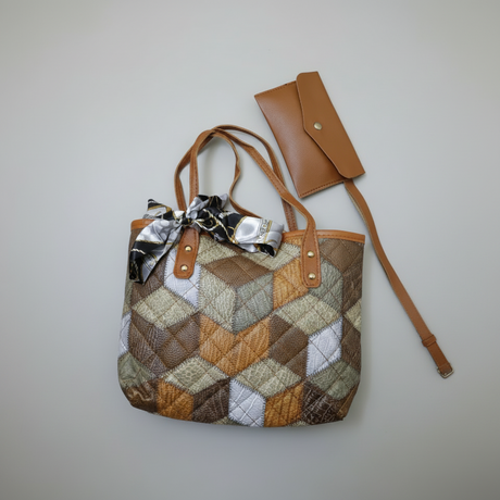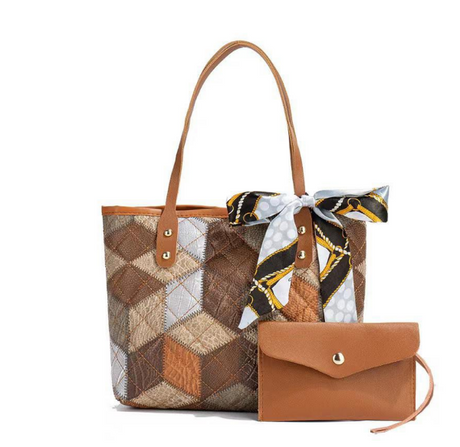 Regular price KSh3,800.00Unit price /Unavailable Multicolored Diamond Grid Printed Handbag 2-Piece Set with Pouch Scarf 29x21cm