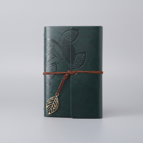 Notebook - A6 Retro Leaf Design with Leather Tie