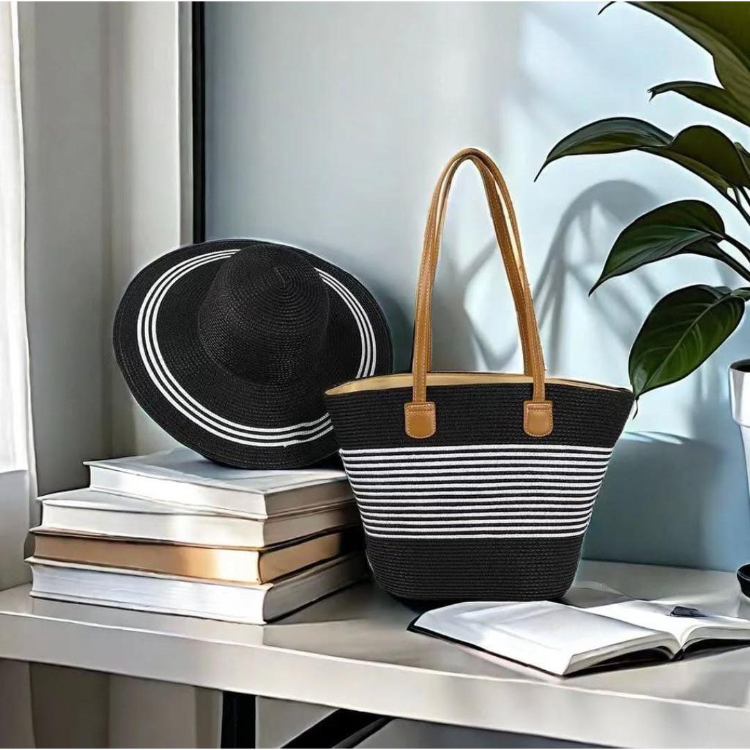 2-in-1 Set: Matching woven beach tote & wide brim hat