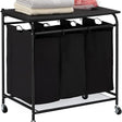 3 Compartment Laundry Basket with Lockable Wheels and Ironing Board 80x79x42cm