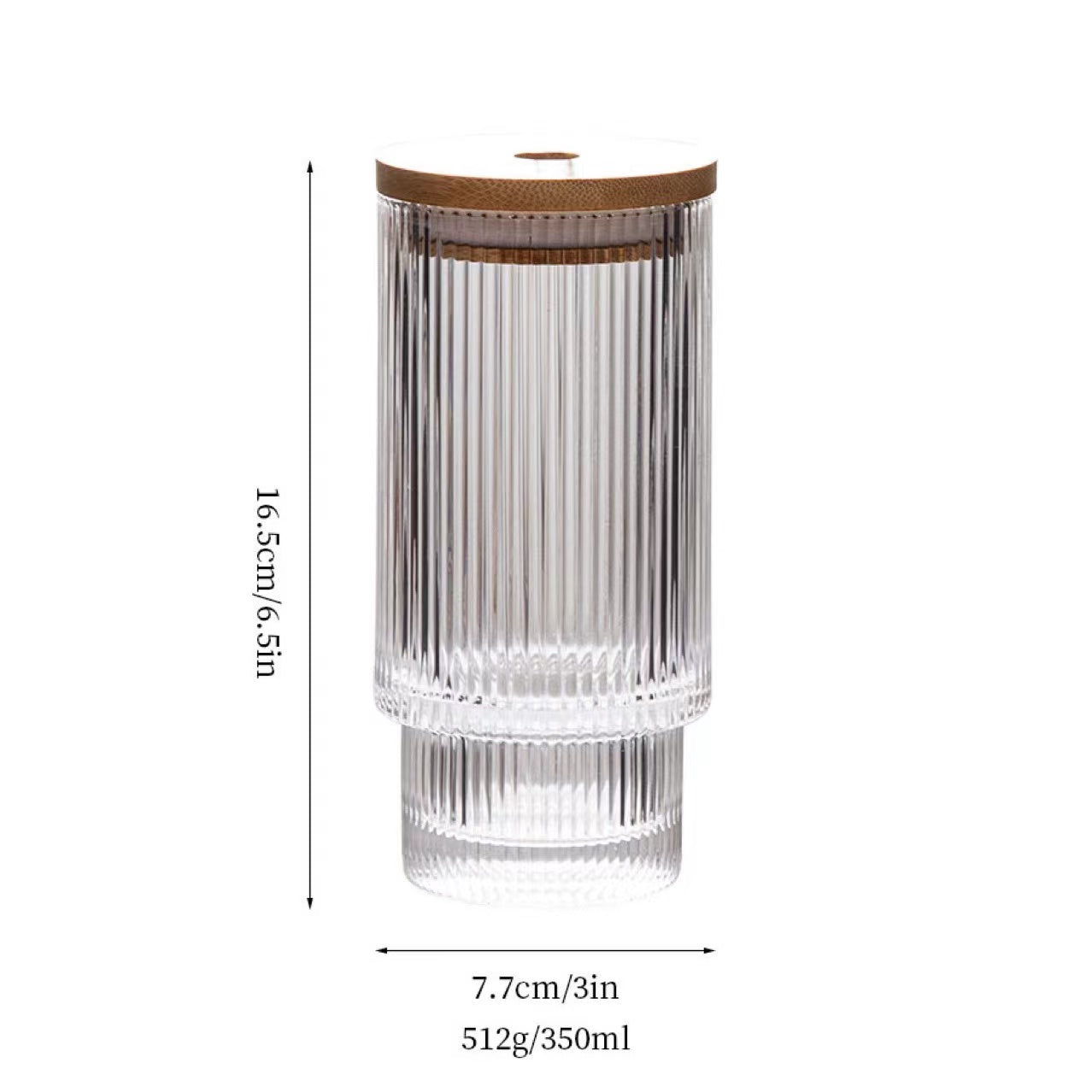 350ml Ribbed Borosilicate Glass Tumbler with Bamboo Lid & Straw