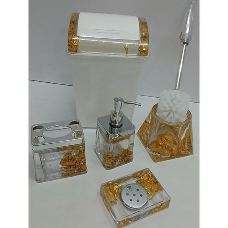 6 in 1 Acrylic Bathroom Set with Decorative Flowers Inside