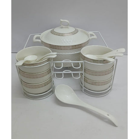 Sale price KSh1,800.00 Regular price KSh3,150.00Unit price /Unavailable15 Piece White Ceramic Soup Set with Metallic Holder