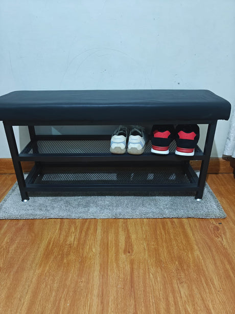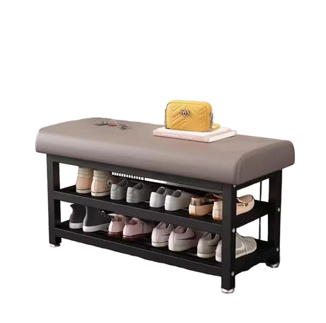 Entry Way Shoe Rack with Padded Seat – Metallic Base