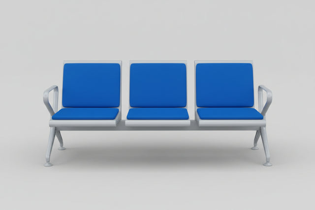 Create a comfortable and professional waiting area with this 3-seater waiting chair. Perfect for hospitals, clinics, offices, banks, government institutions, and reception areas, this durable seating solution combines modern design with practical functionality. The bright blue cushioned seats provide comfortable seating for three people, while the sturdy metal frame with silver finish ensures long-lasting durability and stability. Each seat features thick padding for extended comfort, making waiting times more pleasant for your visitors and clients. The sleek contemporary design complements any professional environment, from medical facilities to corporate offices. Built with a robust metal frame construction, this waiting chair is designed to withstand heavy daily use in high-traffic areas. The individual cushioned seats and backrests provide ergonomic support, while the armrests on both ends offer additional comfort and convenience. The stable four-leg base with floor protectors prevents slipping and protects your flooring from scratches. Easy to clean and maintain, the upholstered seats can be wiped down quickly to maintain a hygienic environment. Whether you're furnishing a new waiting room or upgrading existing seating, this 3-seater waiting chair delivers the perfect combination of comfort, durability, professional appearance, and value for high-traffic commercial spaces.