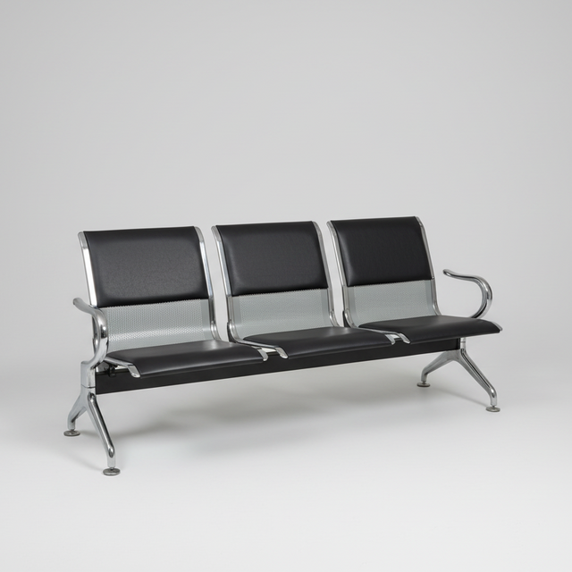 Create a comfortable and professional waiting area with this 3-seater waiting chair. Perfect for hospitals, clinics, offices, banks, and reception areas, this durable seating solution features black cushioned seats with a sturdy chrome metal frame. Each seat provides comfortable seating with thick padding, while the sleek contemporary design complements any professional environment. Built to withstand heavy daily use in high-traffic areas.