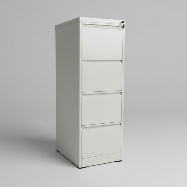 Keep your office organized with this professional 4-drawer filing cabinet. Perfect for offices, home offices, and commercial workspaces, this vertical filing cabinet provides secure storage for documents, files, and office supplies. Features four spacious drawers with smooth-glide rails for easy access, each equipped with individual locks for security. The durable metal construction with light grey finish ensures long-lasting performance in professional environments. Built with sturdy construction for daily office use.