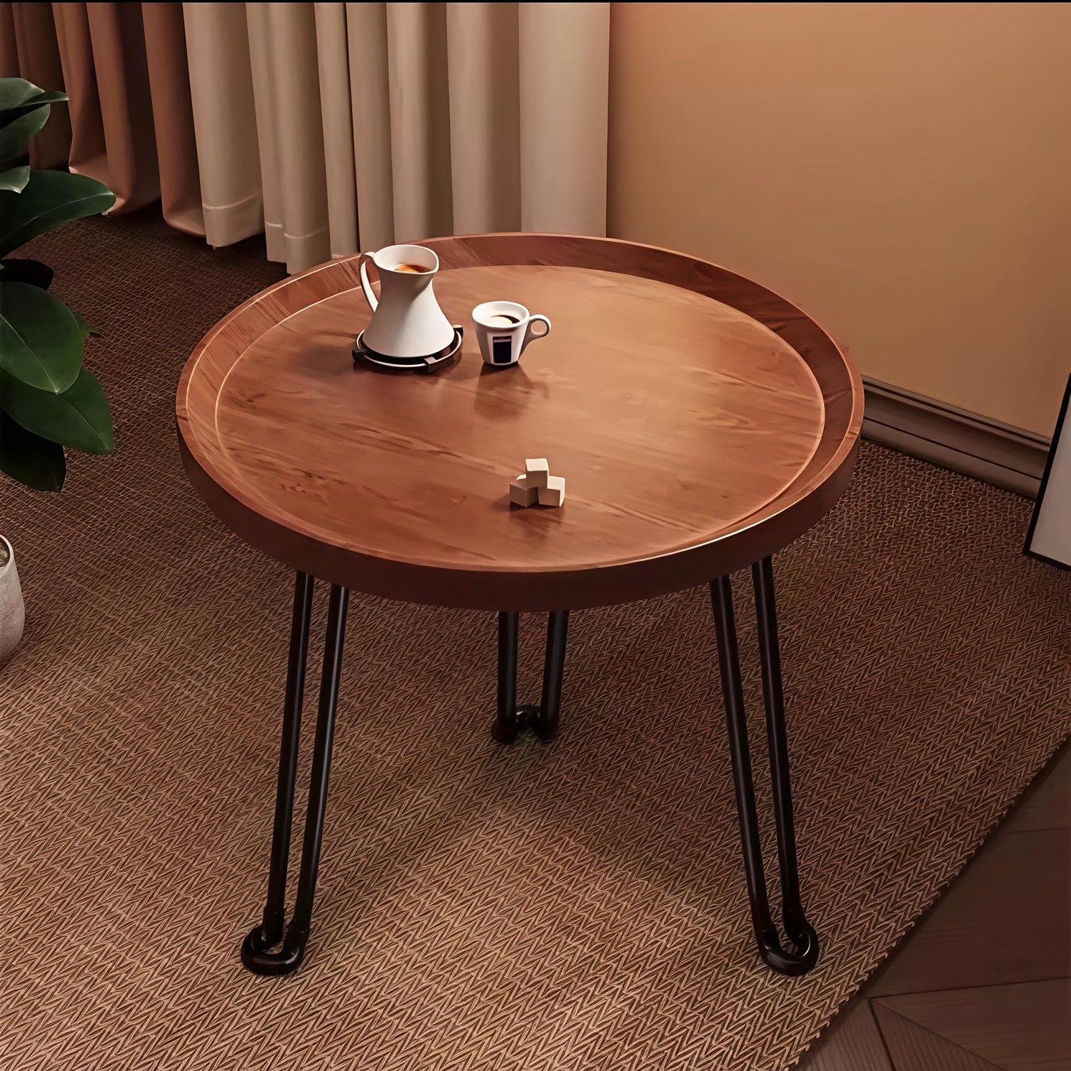 Add a modern vintage touch to your space with this Mid-Century Metal & Wood Side Table. Designed with a sturdy wood top and sleek metal hairpin legs, this compact table blends style and function beautifully. Its lightweight build makes it easy to move around while remaining strong enough for everyday use perfect as a side table, nightstand, or decorative stand.