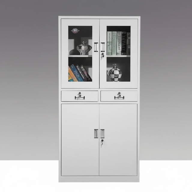 Premium Office Filing Cabinet 4-Door Steel with Glass Doors Drawers Lockable White