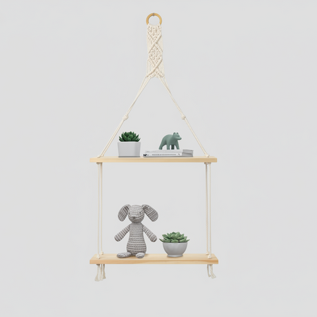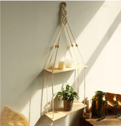 Macrame Hanging Floating Shelf Wall Decor 2 Tier