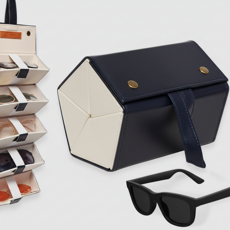 Multi-Slot PU Leather Sunglasses Organizer Storage Box