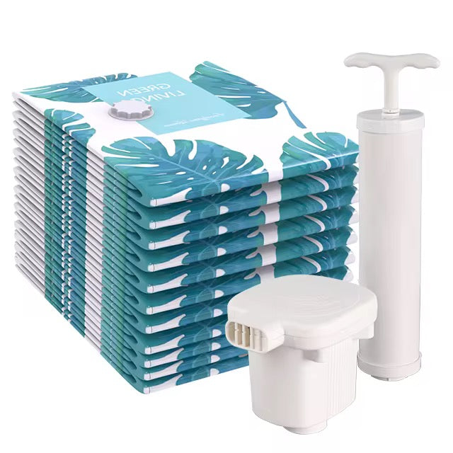 Say goodbye to clutter and hello to organized living with our 10-Piece Vacuum Storage Bag Set, designed to compress bulky items and protect them from moisture, dust, insects, and mold. Whether you’re storing seasonal bedding or packing for travel, these durable bags with a rechargeable electric pump make storage effortless and efficient.