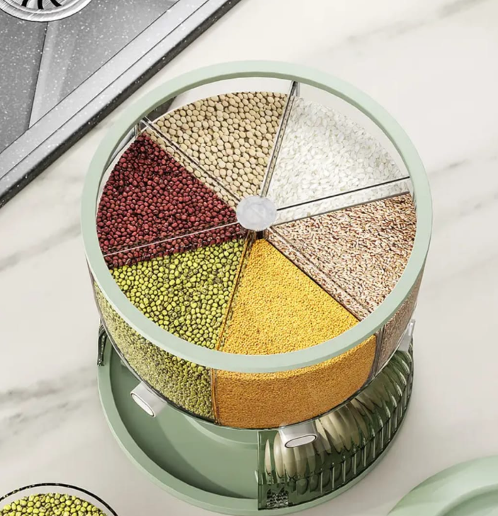 Make cereals storage easier with this innovative 2-in-1 partitioned air tight rotating cereals dispenser. Features dual compartments for different cereals plus a convenient egg holder, keeping your kitchen organized and your food fresh.