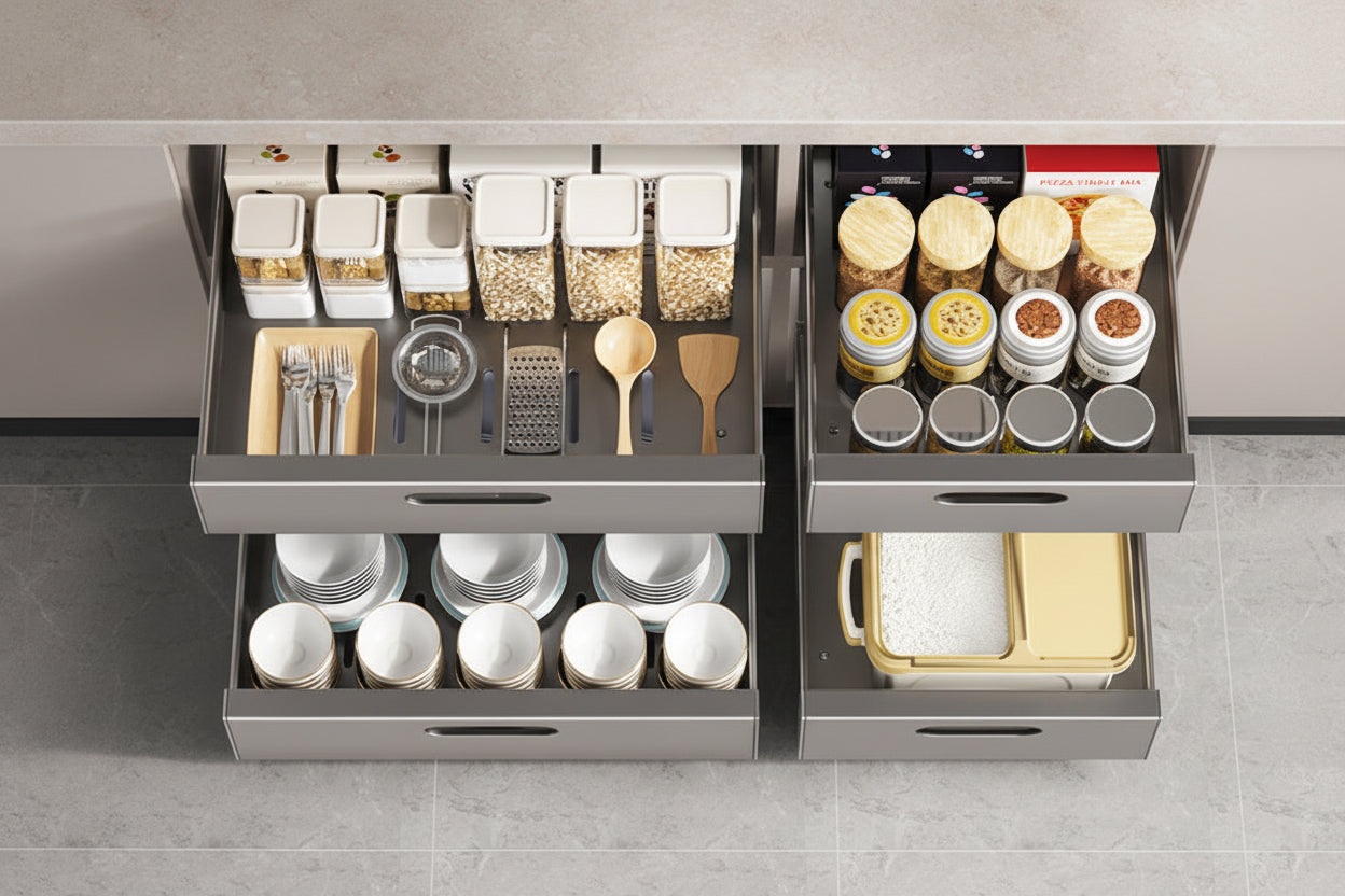 This pull out cabinet drawer organizer is designed to keep your kitchen neat, stylish, and clutter-free. With a smooth sliding mechanism and a strong carbon steel build, it makes organizing loose items effortless while improving access inside cabinets and drawers.