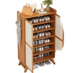 Organize your entryway beautifully with this Wooden Bamboo Shoe Rack and Storage Cabinet. Made from a blend of natural bamboo and composite boards, it offers a durable, eco-friendly, and stylish storage solution. The ventilated shelves and breathable mesh doors allow airflow to prevent odours, making it perfect for footwear, bags, books, and décor items. Its compact structure fits seamlessly into small spaces while providing generous enclosed storage.
