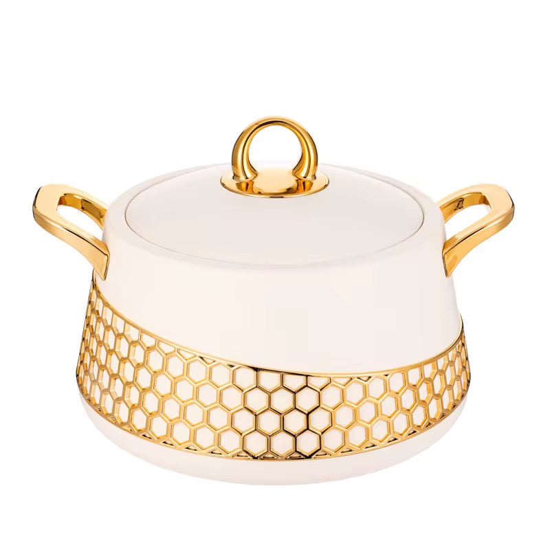 Serve in style and keep your meals hot for hours with this Premium Quality 3-Piece Insulated Food Warmer Set. Designed with elegance and function in mind, each warmer features a sleek gold honeycomb pattern that adds a luxurious touch to any dining setup.