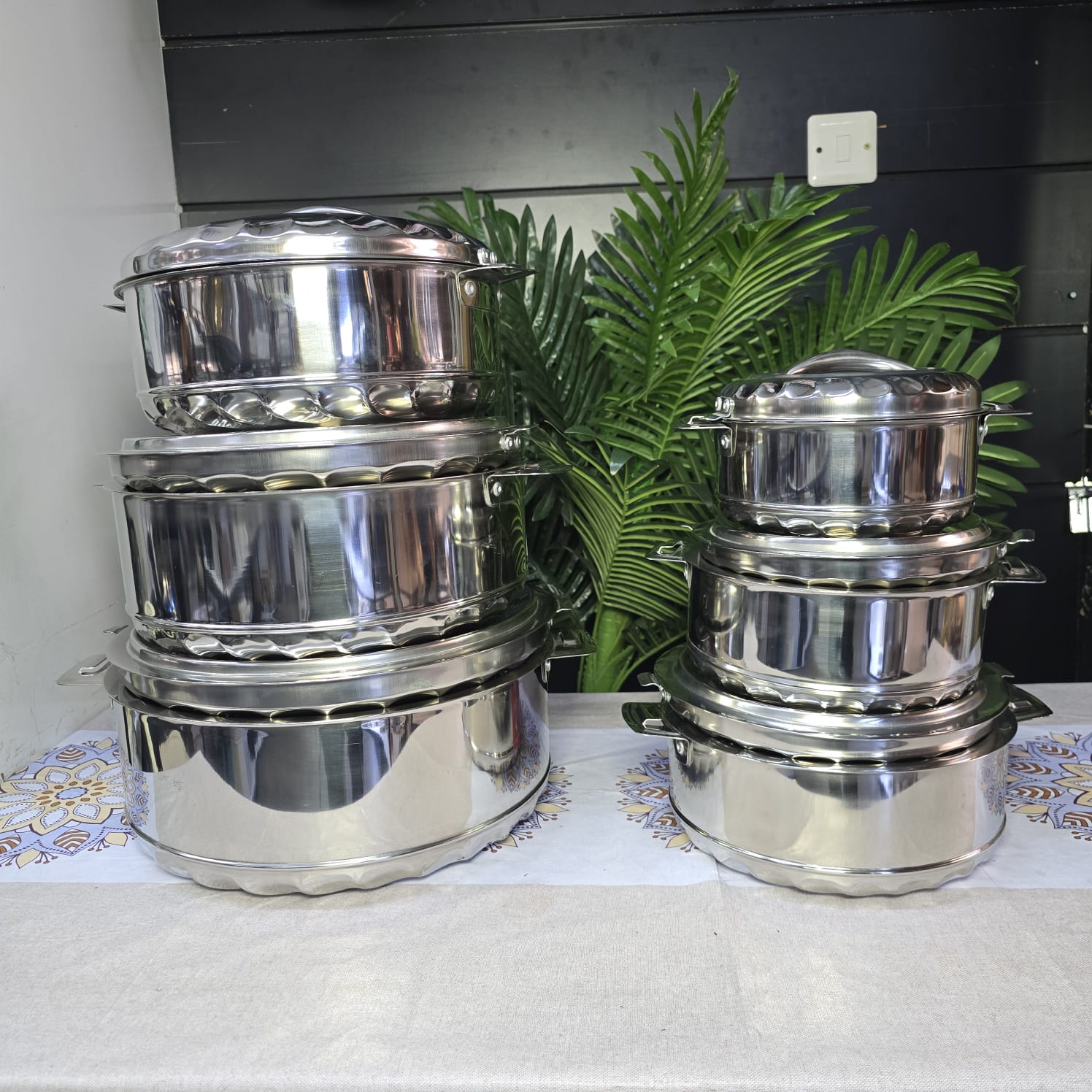 Keep meals hot and fresh with this 6-piece stainless steel hotpot set. Designed with insulated interiors and durable exteriors, the set includes multiple sizes to cater for family meals, events, or everyday use.