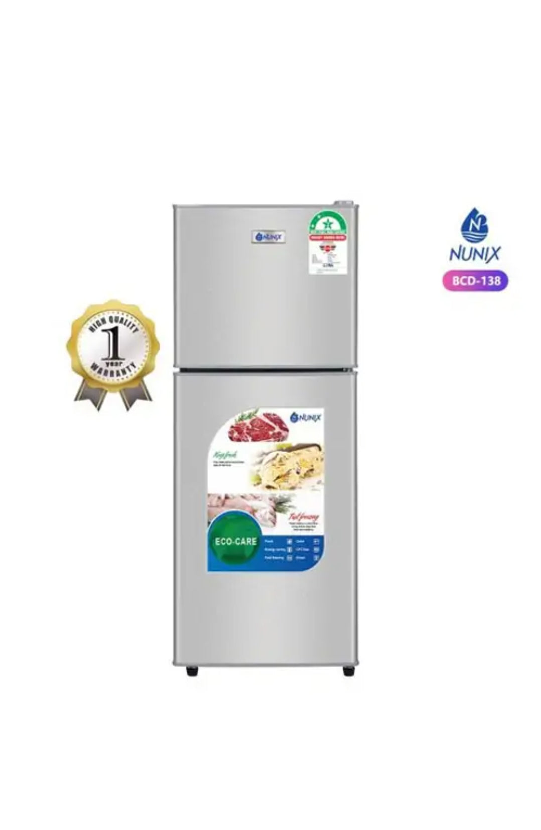 The Nunix BCD-138 is a sleek and energy efficient double door refrigerator designed for everyday use in modern homes. With a spacious 138L capacity, it offers separate compartments for fridge and freezer storage. Built with Eco-Care technology, it ensures energy saving, fast freezing, and reliable cooling performance perfect for preserving freshness in all your food and beverages.