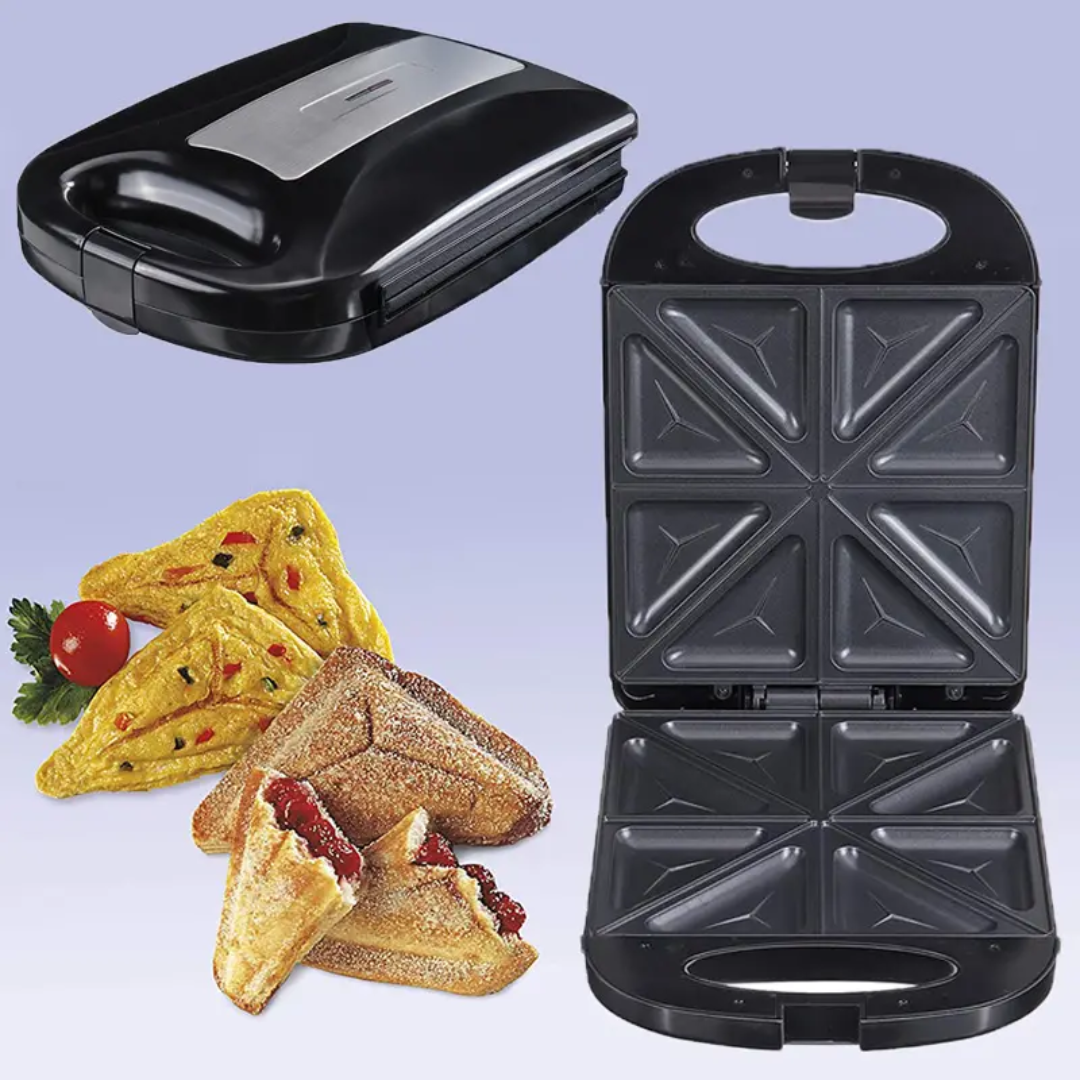 Make delicious sandwiches in minutes with the Rashnik RN-1711 4-Slice Sandwich Maker. Designed for convenience and quick performance, it features nonstick heating plates, indicator lights, and a cool-touch handle—perfect for fast breakfasts, snacks, or light meals at home or in the office.