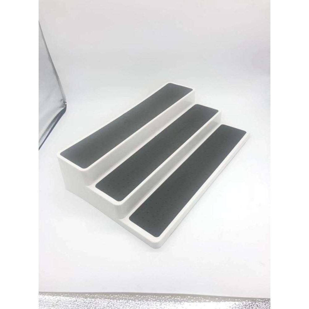 3 Tier Plastic Non-Slip Spice Rack | Waterproof Kitchen Pantry & Cabinet Organizer | Multi-Purpose 3 Tier Spice Shelf in Grey & White - Grey is backordered and will ship as soon as it is back in stock.