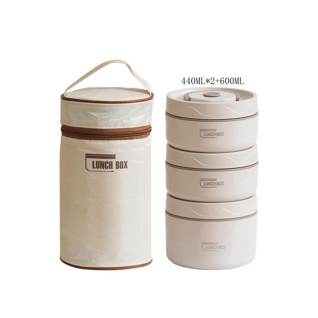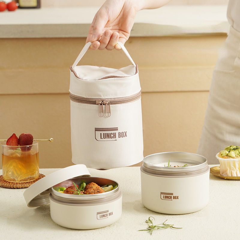 4 in 1 Insulated Lunch Set (2 Lunch Boxes + 1 Lunch Bag) | Stainless Steel Lunch Box Microwave Oven Circular Portable Minimalist Lunch Bo