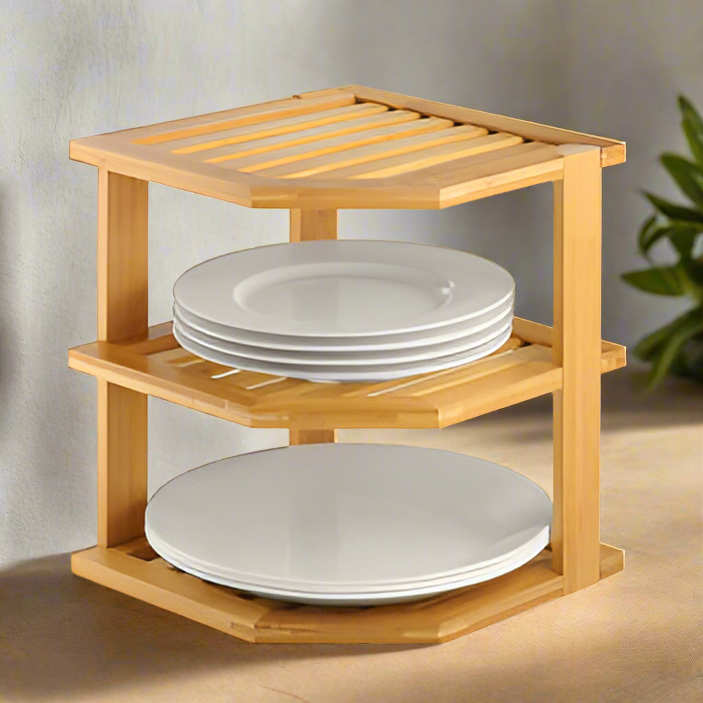Multifunctional 3-Tier Corner Bamboo Kitchen Storage Spice Rack Space Optimized & Strong