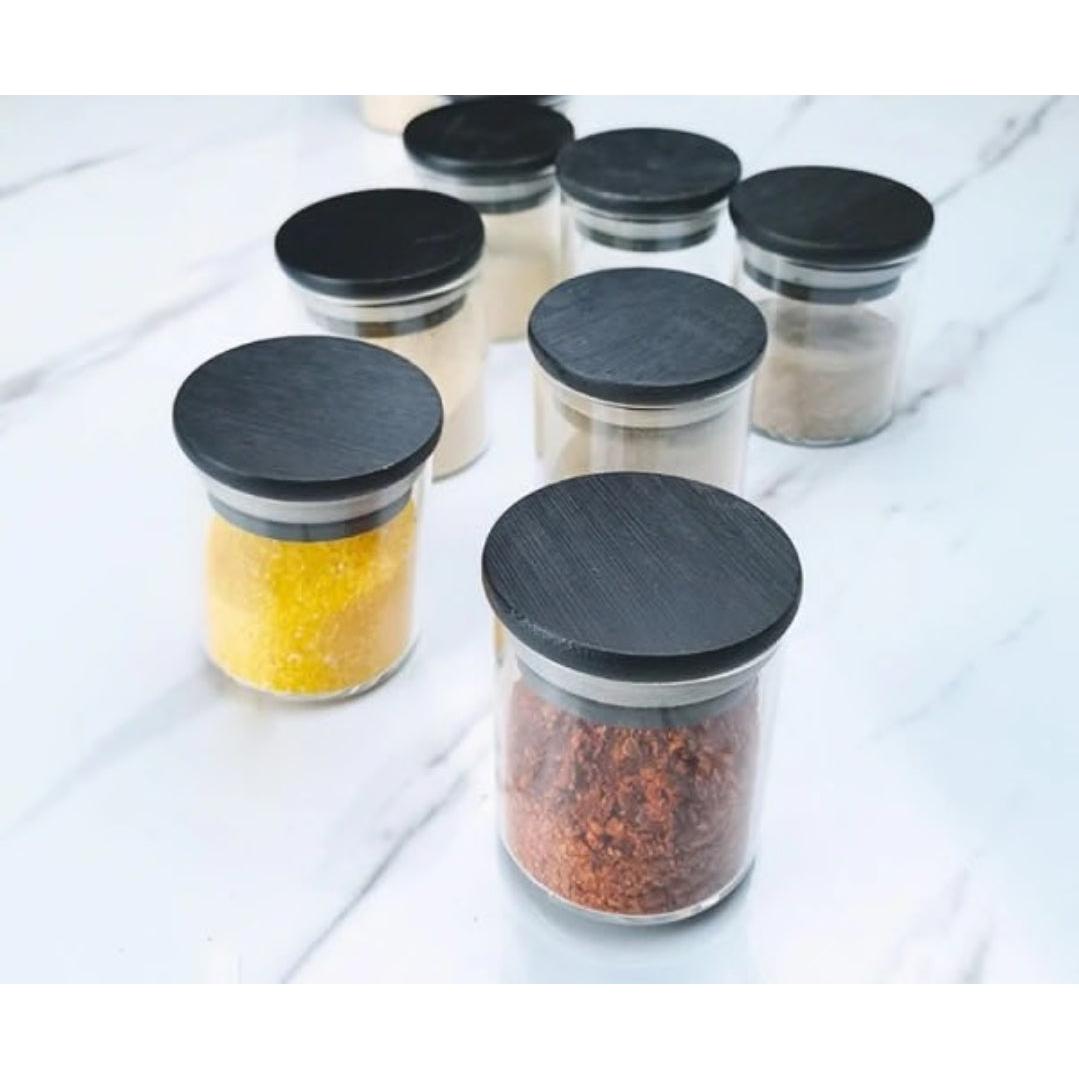 • Airtight Bamboo Black Lids: Keeps spices fresh and moisture free