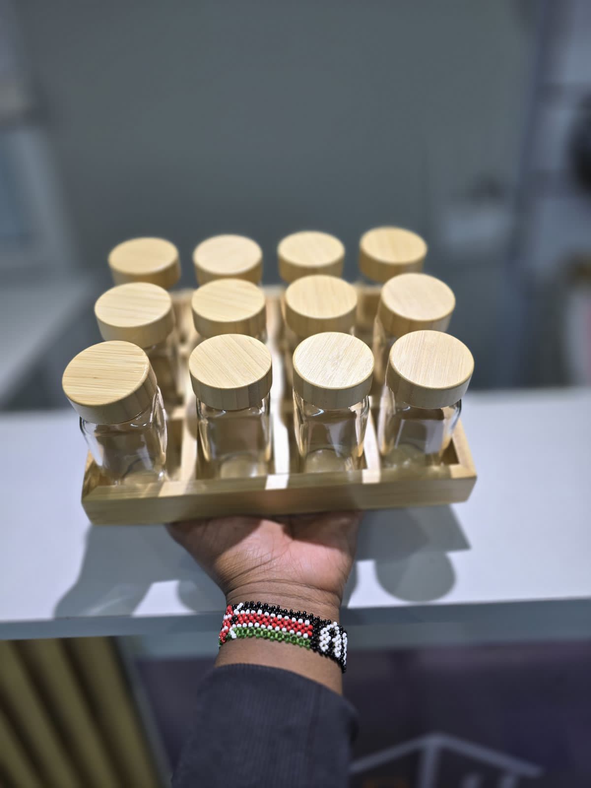 Material: Glass Jars + Metal/Plastic Rack (depending on stock)