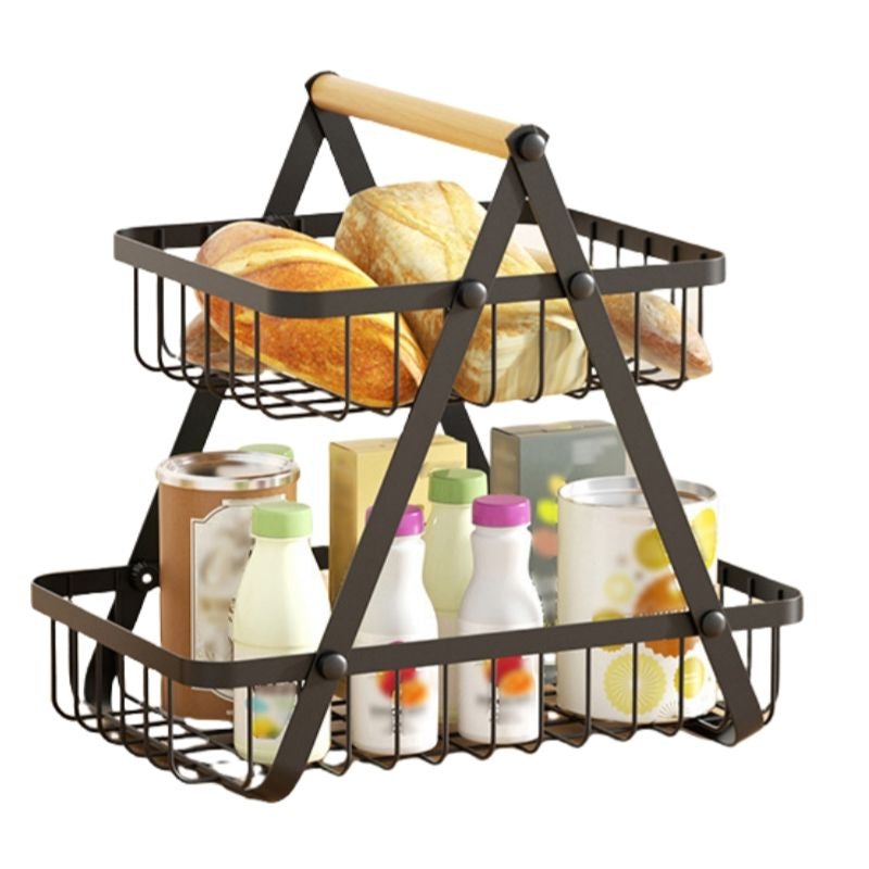 Keep your fruits and vegetables fresh and organized with this 2-Tier Fruit Rack. Designed with a sturdy black metal frame, this rack provides ample storage while adding a modern touch to your kitchen or dining space. Its open-wire design allows for proper air circulation, keeping produce fresh for longer. Ideal for countertops, pantries, or dining tables, this space-saving organizer enhances both function and style in any home.