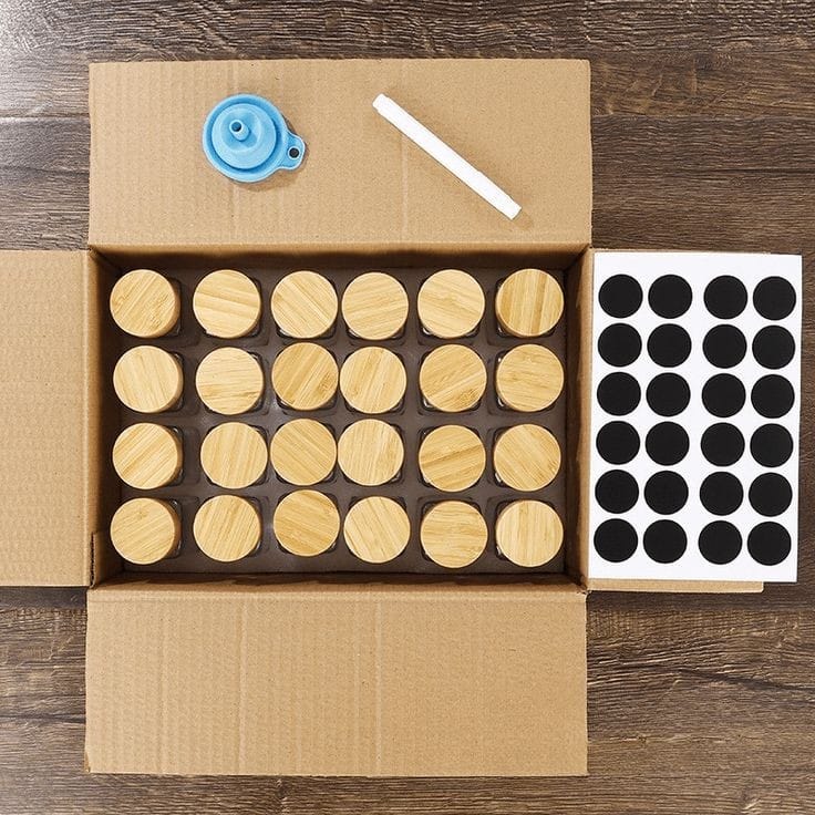 29pcs Glass Spice Jar Set 120ml Jars with Bamboo Lids, Adjustable Shaker Tops & Tools