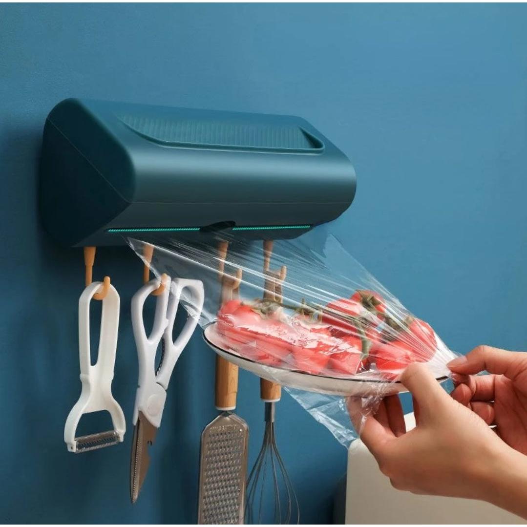 - Design: 3-in-1 wall-mounted dispenser for cling film, foil, and paper towels