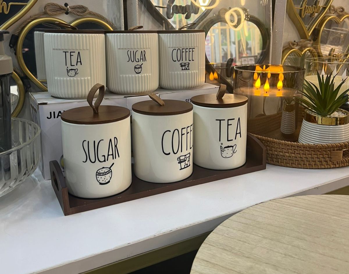 This elegant 3-piece ceramic canister set brings function and charm to your kitchen counter or pantry shelf. Designed to keep items fresh and neatly stored, it's perfect for organizing essentials like tea, sugar, and cereals — especially in shared kitchens or compact spaces.